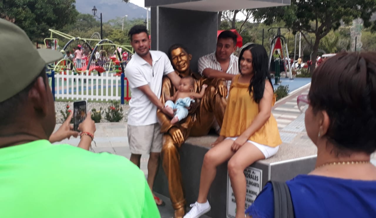Una atractivo más del Parque de la Provincia además de los monumentos de Carlos Vives, también se han sumado el de Ivan Villazón y Kaleth Morales. Este último un gran artista que al inicio de su éxito le llegó la muerte en un accidente. Se convirtió en el Rey de la Nueva Ola y si ídolo de muchos jóvenes que aprendieron a querer la música vallenata de manera alternativa como nos la mostró la creatividad de Kaleth. El hijo mayor de Miguel Morales y Nevis Troya que nos hizo soñar con la canción Vivo en el Limbo, Ella es mi Todo y mis Cinco Sentidos. Hoy si figura es una de las más fotografiadas por los visitantes. Todos quieren con Kaleth. Foto: Hernando Vergara