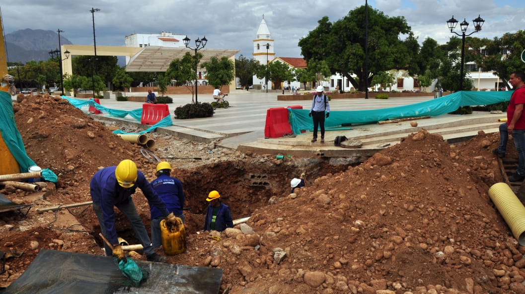 Continúan las obras del Colector del Centro Histórico de Valledupar. Una inversión que inició Emdupar en el gobierno de Augusto Ramírez Uhía y que el actual alcalde Mello Castro entregará a los vallenatos. Por ahora tanto un tramo de la carrera cuarta como la zona aledaña a la Plaza Alfonso López se encuentran cerradas debido a la intervención que servirá para el desarrollo de la ciudad. Foto: Hernando Vergara