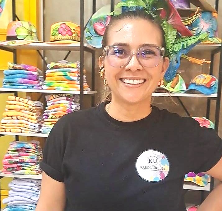 Karol Urbina, es una empresaria de Becerril, orgullosa de seguir creciendo con su pasión para diseñar prendas que tienen historia. Ella ve en Expofestival una excelente vitrina para compartir su arte, y hacer relaciones. Dice que siempre vende todo, por eso ha animado a personas que iniciaron su trabajo con ella, y hoy son otros expositores. En su stand hay camisas, camisetas, gorras, sombreros y adornos alusivos al festival vallenato.
